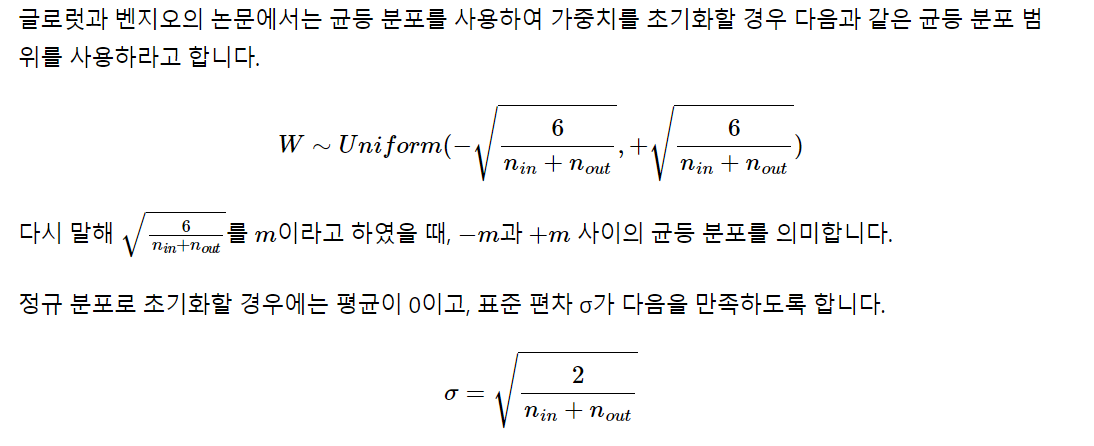 글로럿 초기화: https://wikidocs.net/61271 - 르쿤, He 초기화