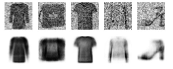 denoising_encoder = keras.models.Sequential([ keras.layers.Flatten(input_shape=[28, 28]), keras.layers.GaussianNoise(0.2), keras.layers.Dense(100, activation="selu"), keras.layers.Dense(30, activation="selu") ]) denoising_decoder = keras.models.Sequential([ keras.layers.Dense(100, activation="selu", input_shape=[30]), keras.layers.Dense(28 * 28, activation="sigmoid"), keras.layers.Reshape([28, 28]) ]) denoising_ae = keras.models.Sequential([denoising_encoder, denoising_decoder]) denoising_ae.compile(loss="binary_crossentropy", optimizer=keras.optimizers.SGD(learning_rate=1.0), metrics=[rounded_accuracy]) history = denoising_ae.fit(X_train, X_train, epochs=10, validation_data=(X_valid, X_valid))