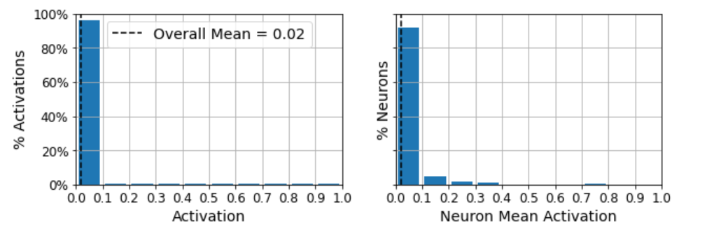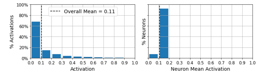 전체 활성화의 약 70%가 0.1보다 작고, 전체 뉴런의 약 90%가 0.1~0.2 사이의 평균 활성화를 가짐.