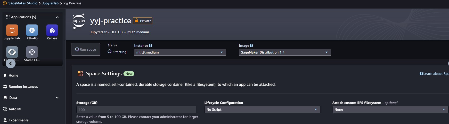 - SageMaker Studio 내의 Jupyterlab에서 수행